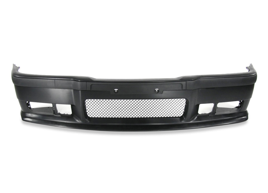 Kompletní přední nárazník pro BMW E36 v designu M3 určený jako přímá náhrada za původní díl. Nárazník je opatřený potřebnými držáky k uchycení na vůz, držáky mlhových světlometů, mřížkou nárazníku a demontovatelným lízátkem.